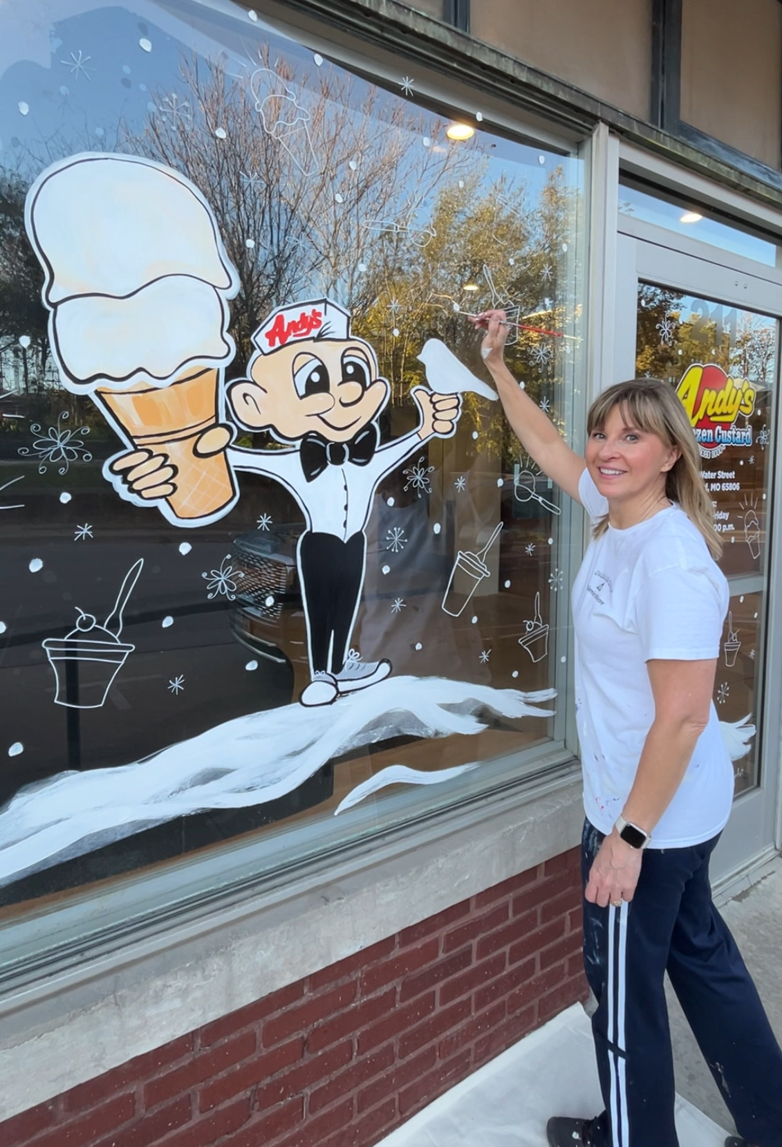 I also create custom artwork and window designs that bring art into everyday spaces. Whether it’s a welcoming storefront or a cozy kitchen wall, I love helping people turn blank surfaces into something joyful and personal.