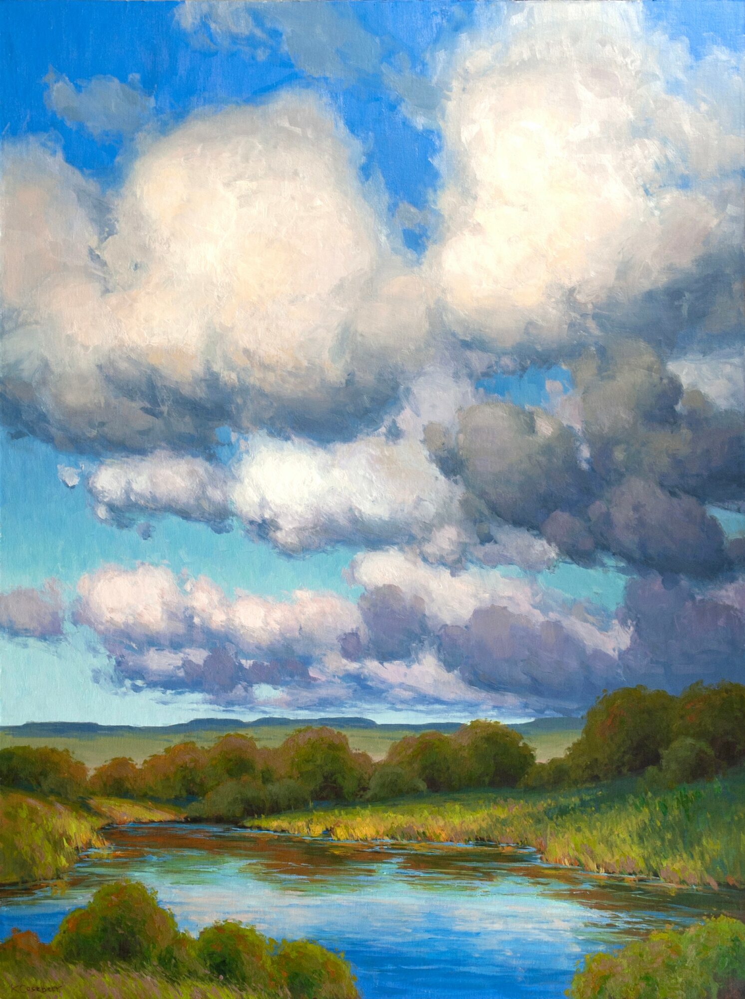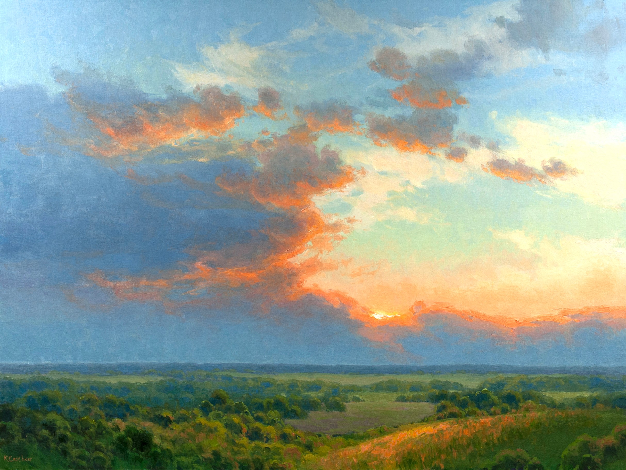 Kim Casebeer spent her childhood exploring the outdoors on her family farm and has a lengthy connection to the landscape.  She went to Kansas State University, where she graduated with a BFA in 1992. Kim worked for advertising agencies as a graphic designer for almost 10 years, but was always painting in her spare time. In 2001, she decided to quit her graphic design job to focus on her art full-time.