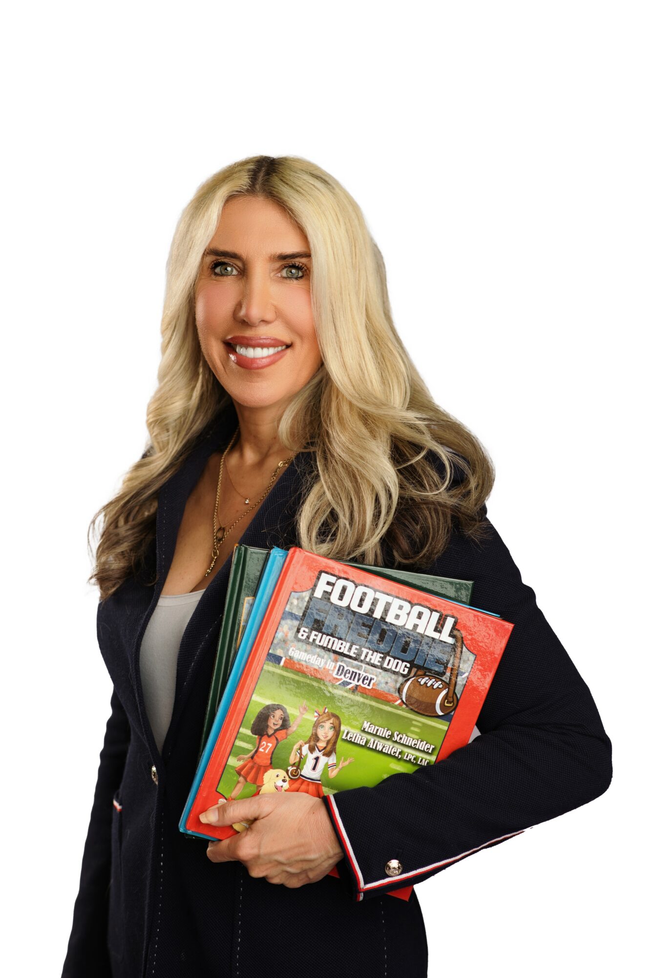 Marnie’s love for sports and storytelling converged in her acclaimed children’s book series, Gameday in the USA. Featuring Football Freddie and her sidekick, Fumble the Dog, these books celebrate the rich culture, history, and football traditions of cities across the nation. The series has become a favorite among young readers and sports fans, earning a spot among Amazon’s Top 100 Kids Sports Travel Books. Marnie’s latest installment, Gameday in Canton, highlights the city’s vibrant football legacy and the home of the Pro Football Hall of Fame.