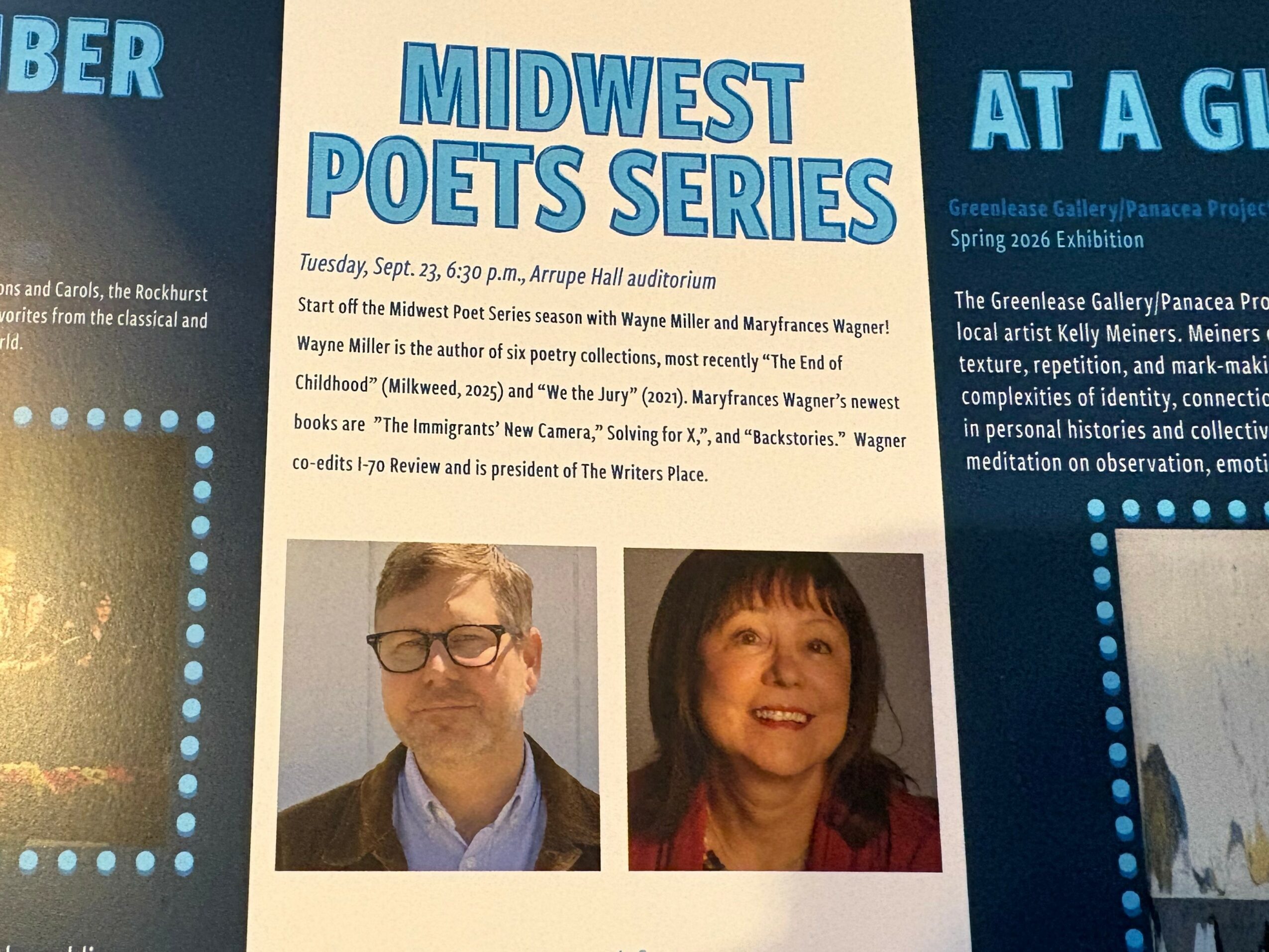 I suppose I would divide my life into three different areas: teacher, poet, and community builder. When I began writing poetry, my father encouraged me to remember my heritage. Many of my poems are about my family. One of my books, The Immigrants’ New Camera is a memoir in poems of my family. I’ve published eleven books of poems and am working on a new one now. I also served from 2021-2023 as Missouri Poet Laureate, and that experience brought with it many adventures and poignant moments. Also, I have been a teacher at all levels. I have taught high school and college classes as well as many workshops all over the state. I still teach a few workshops. As the president of the Writers Place, I try to build a literary community that welcomes all people to attend workshops, readings, parties, and social events. It’s actually hard to put my whole life into a small summary because I have had so many wonderful parts to my life. I also served on the Kansas City Creates board for many years in an effort to bring the arts together and to support creatives in Kansas City.