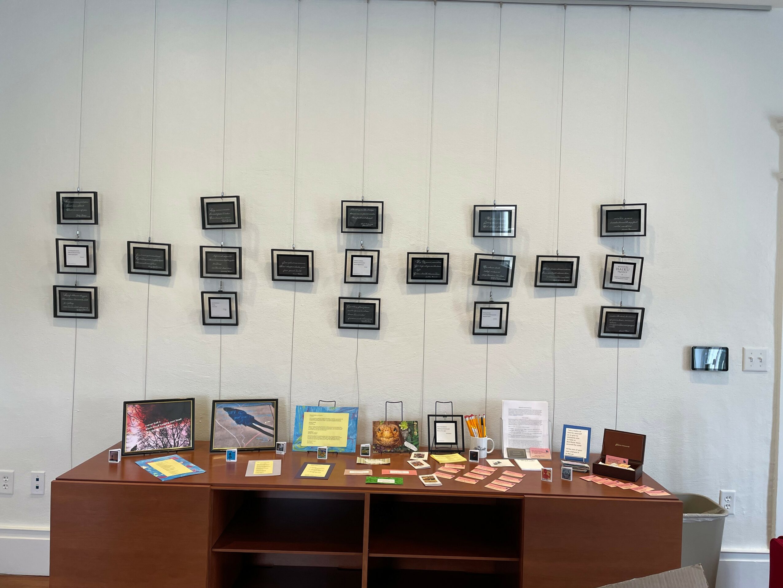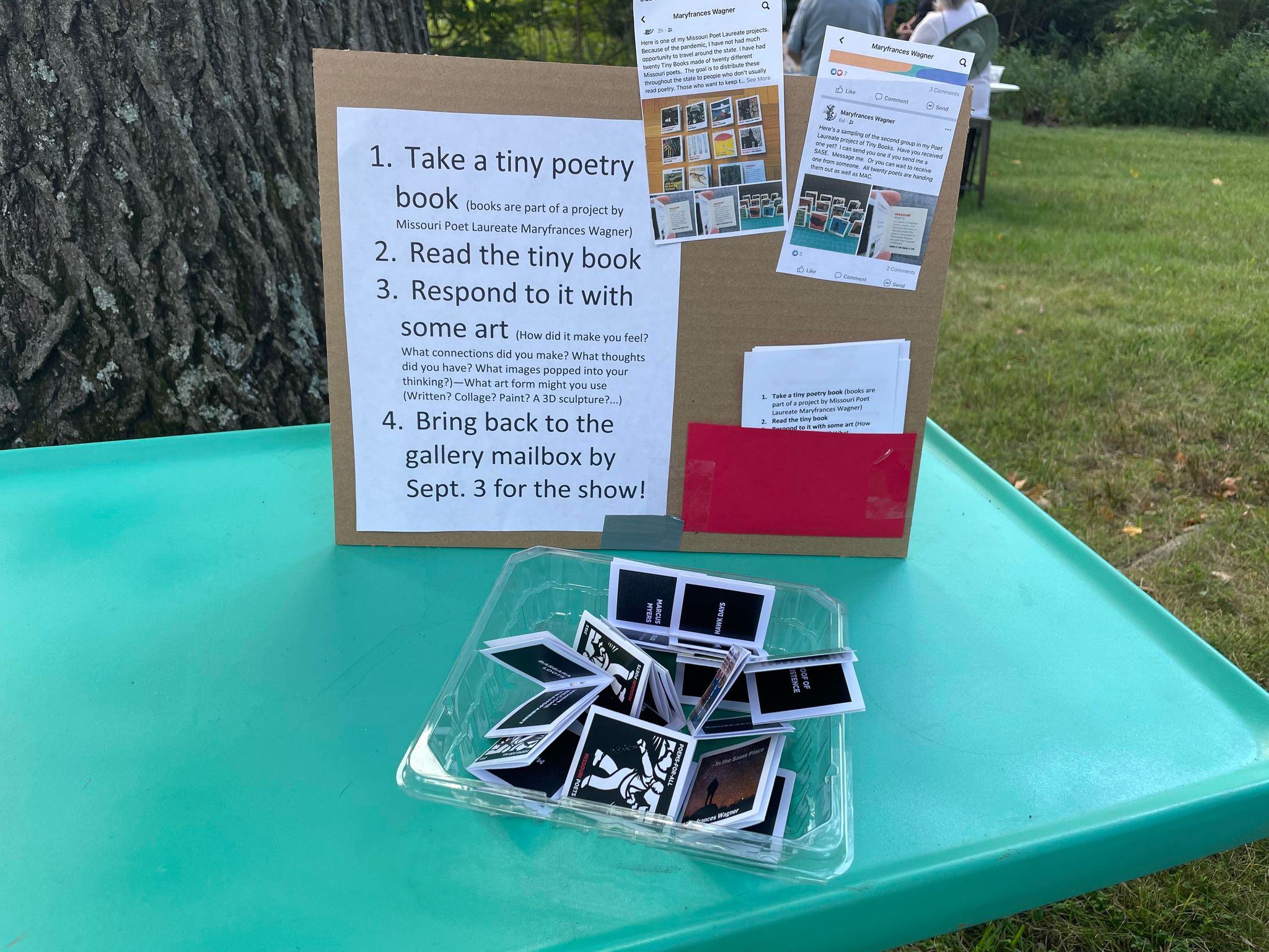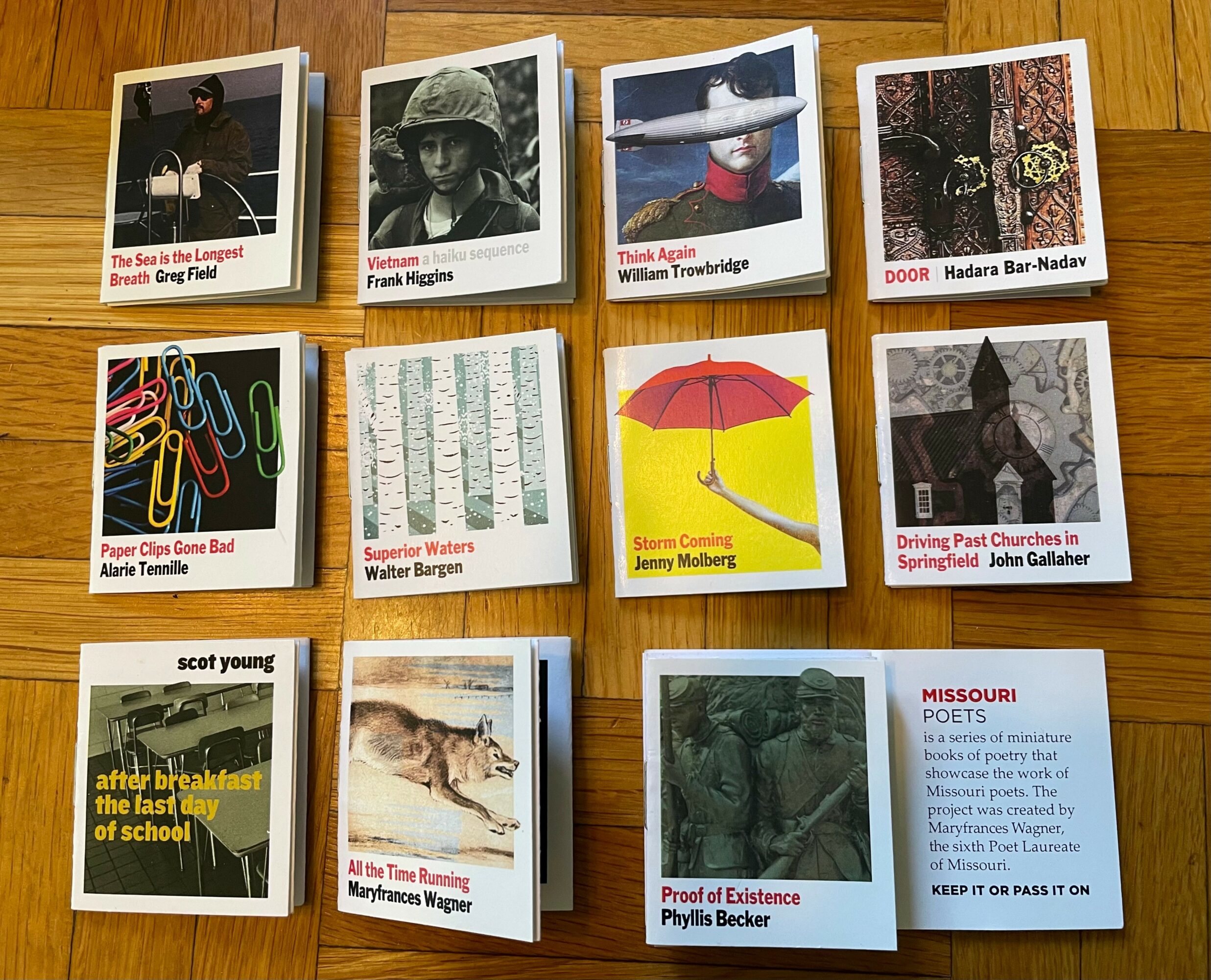 As Missouri Poet Laureate, I read poetry, published a new book, wrote a Missouri poem I delivered at the Capitol, conducted workshops, and delivered keynotes and talks all around the state. Since we were still at the end of the pandemic, I decided to reach people in other ways, so I created some projects. I produced ten podcasts of interviews with Missouri poets on the craft of writing for teachers and those interested in learning more about poetry. I also published two anthologies with Spartan Press and ten Missouri poets featured in each anthology. I had two thousand Tiny Books made–a small booklet that folded out. Each Tiny Book featured one poem by yet another twenty Missouri poets. I distributed a packet of those to each of the poets, and they handed them out around the state. I felt fortunate that I knew so many poets in Missouri who essentially lived in all parts of the state, and I also met many new poets I didn’t know before. My final project was the Haiku Project where I taught haiku workshops throughout the state. Others helped teach them as well. I taught them at festivals, conferences, in schools, in community centers, at The Writers Place, and a teacher in Columbia had students at each grade level write haiku for me as well. We posted daily haiku on Facebook and Instagram, and hundreds of people sent me haiku that I ultimately had professionally printed on cards. A few people wrote at least one a day with me and posted them on Facebook. Some put them on photographs or art they had created. I printed 10,000 haiku cards from those I received from people in every area of the state, every age –from six years old to ninety-five, and they represented a wide diversity. They are still circulating around the state. I always leave either a Tiny Book or a Haiku card for every wait person when I eat out. I hand them out randomly to people who might find them interesting when I walk or standing in line. I’ve given cards to other poets that they hand out as well. My goal during those two years was to get poetry into the hands of people who didn’t think they liked it or didn’t know much about poetry. I had people read them, write them, and share them. If there was a waiting time in a long line or a doctor’s office, I asked people to write them and guided them through the process. When the power went out in my neighborhood, my neighbors called to ask if we were also in the dark, and I told them it was a good time to write a few haiku. I gave them the directions, and a couple of hours later, they send me haiku poems. I also had one hundred of the haiku framed and put up in the Story Center at Woodneath Library. I filled two display cases with books by Missouri poets, haiku cards, pictures from workshops, art and objects that people had put their haiku on, and I set up a table with a bowl for people to write haiku when they came to the library. I also taught two workshops there. Students chalked them on sidewalks and hung them in trees, and planted haiku sticks in parks. In Columbia, there was a haiku high tea at the local library, a tiny gallery of art that people wrote haiku about, and an artist there had a tiny gallery in her front yard and had people driving or walking by stop and write haiku poems to the art inside. At the end, we had a final haiku reading for anyone who had written haiku and wanted to read. I loved my experience and was often filled with zeal and many poignant moments.