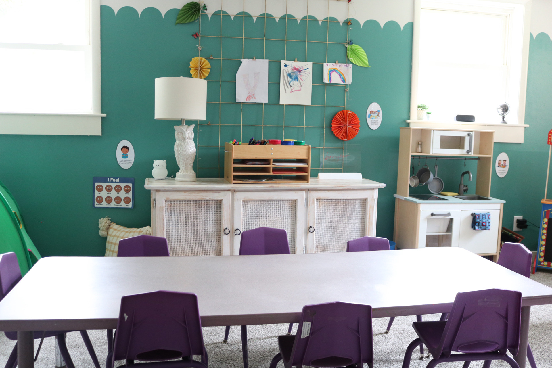 One particular challenge was during the renovation process as we insured we met state and local guidelines of in-home childcare. The state has many rules (as they should!) for anyone starting in-home childcare so I worked closely with the fire department, health department and my state representative to make sure my classroom and playground met the requirements. For anyone thinking of starting in-home childcare, I would recommend familiarizing yourself with all the rules well in advance so you can make sure your space complies. Personally, if I knew how much work it took I would’ve started preparing one year in advance rather than 6 months before. Lesson learned!