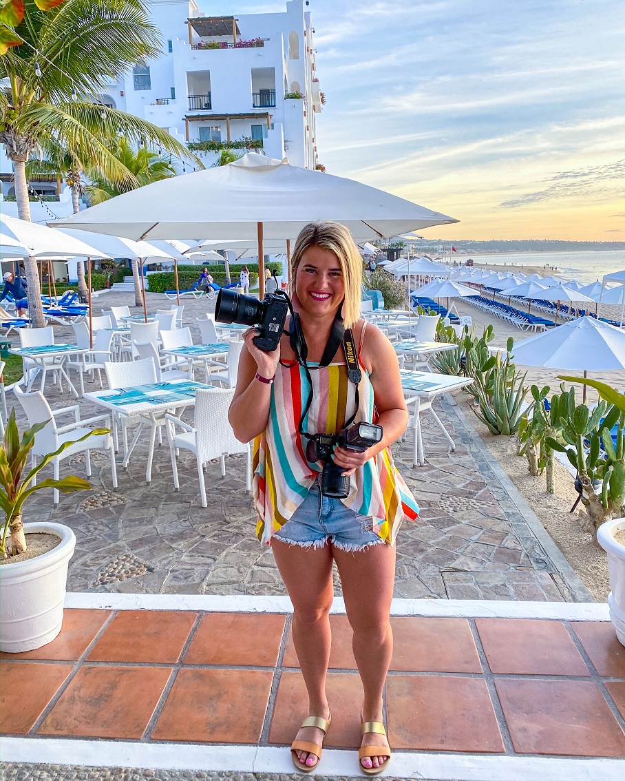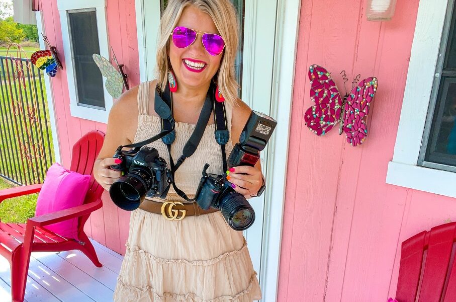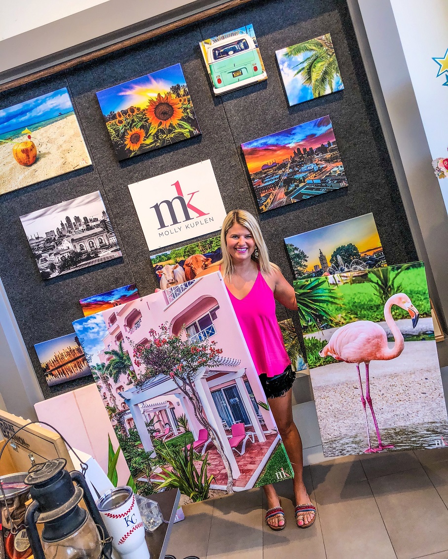 I got started as a photographer by accident. I was originally a teacher in Kansas City, Kansas, and taking a lot of pictures on Instagram – scenic pictures, pictures of my downtown apartment, selfies. All of it:) I grew up on a farm in Southeast Kansas so it was easy to snap fun photos of cows and sunsets and all the kittens. In the Fall of 2015, I had a family friend ask if I would take senior pictures for her daughter. I quickly thought, I can’t do that, I don’t know how but something in me wanted to try it. I went back and forth with it talking myself in and out of it then I eventually just bought a small camera and agreed to do it scared! The pictures ended up turning out really good and I literally googled and YouTubed how to edit and use photoshop and lightroom🤪. I posted the pictures on Facebook because I was super proud of them and that opened up a whole new can of worms. In a good way of course! Suddenly, other people wanted me to take their family pictures, business pictures, or big life events. I continued teaching and continued posting on Facebook and Instagram. Fast forward to the summer of 2017 and I went out on a limb and contacted Hallmark to see about selling my scenic prints in their stores. I couldn’t believe I actually hit send and then I REALLY couldn’t believe when they got back to me in 26 minutes saying they wanted me in all their local Kansas City stores!! Things quickly got busier and busier and in 2019, I quit my teaching job to take on my photography and influencing business full time.