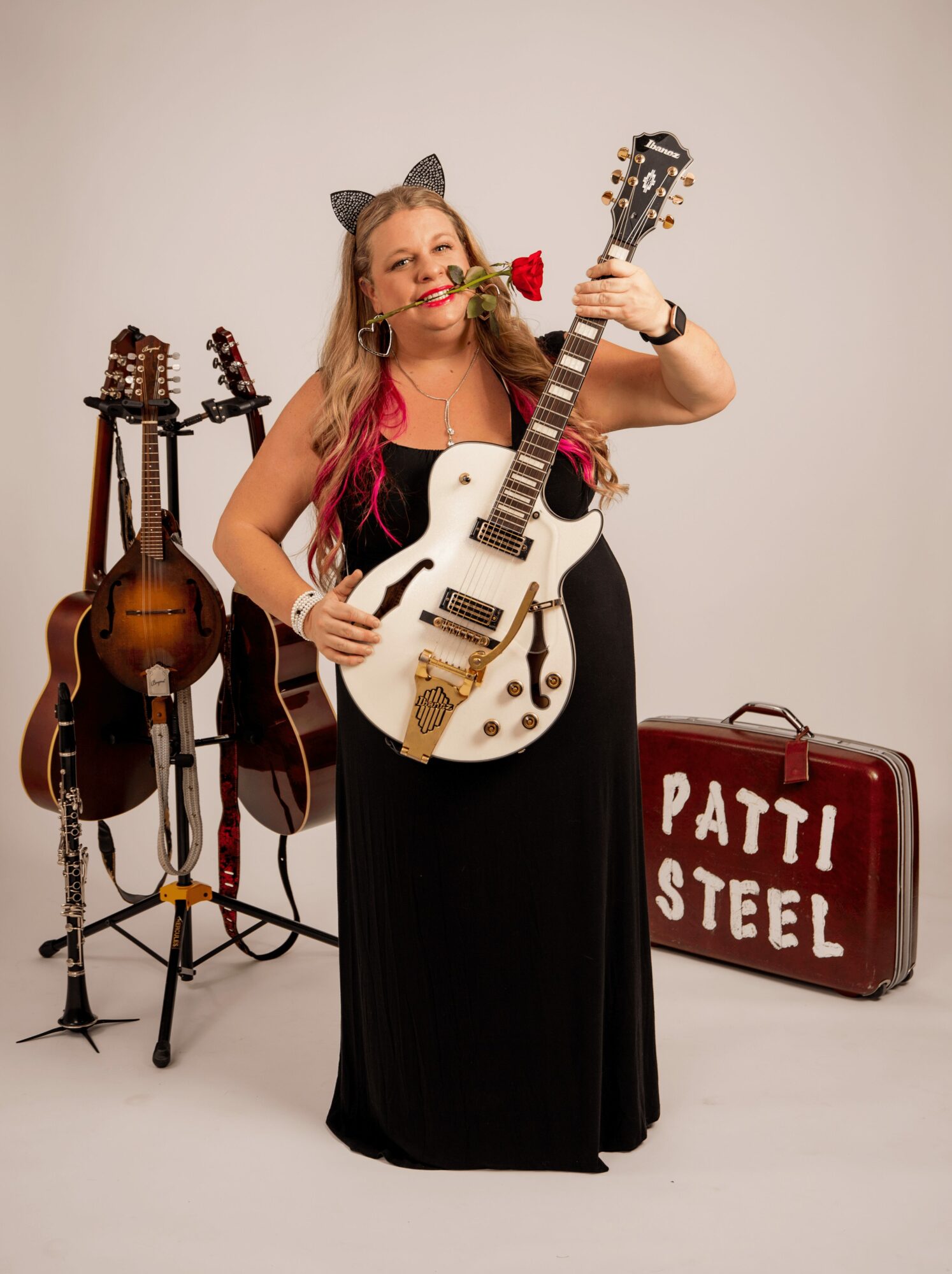 Patti Steel’s musical talents and powerful stage presence have been wowing audiences for over a decade. An award winning multi-instrumentalist she easily switches from clarinet, spoons, guitar, mandolin and many other random noise makers at performances keeping her sound fresh. Combining roots, country, rock and your favorite cover songs, Patti’s live show is upbeat and fun from start to finish. After spending years as a side-woman, Patti stepped into a solo career in 2020 and has been sharing her music across Arkansas, Kansas, Missouri, and Oklahoma. Patti’s goals are to spread love and for people to have fun at her shows.