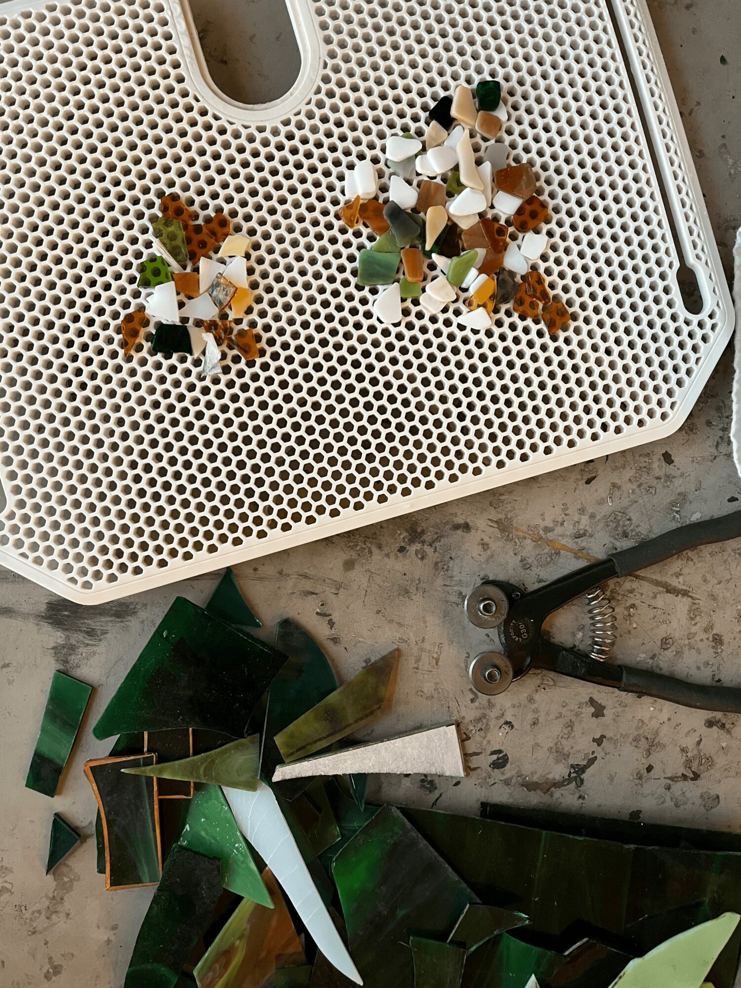 As a Christian visual artist, I am deeply interested in theology and the ways in which art communicates our beliefs about God, others, and our experiences of being human. I most often find inspiration in the colors of the natural world around me and the joy and satisfaction of creating new compositions from pieces of broken glass and ceramic. By reshaping and reassembling what is fragmented and often discarded, I am practicing hope by reimagining new purpose for these broken materials.