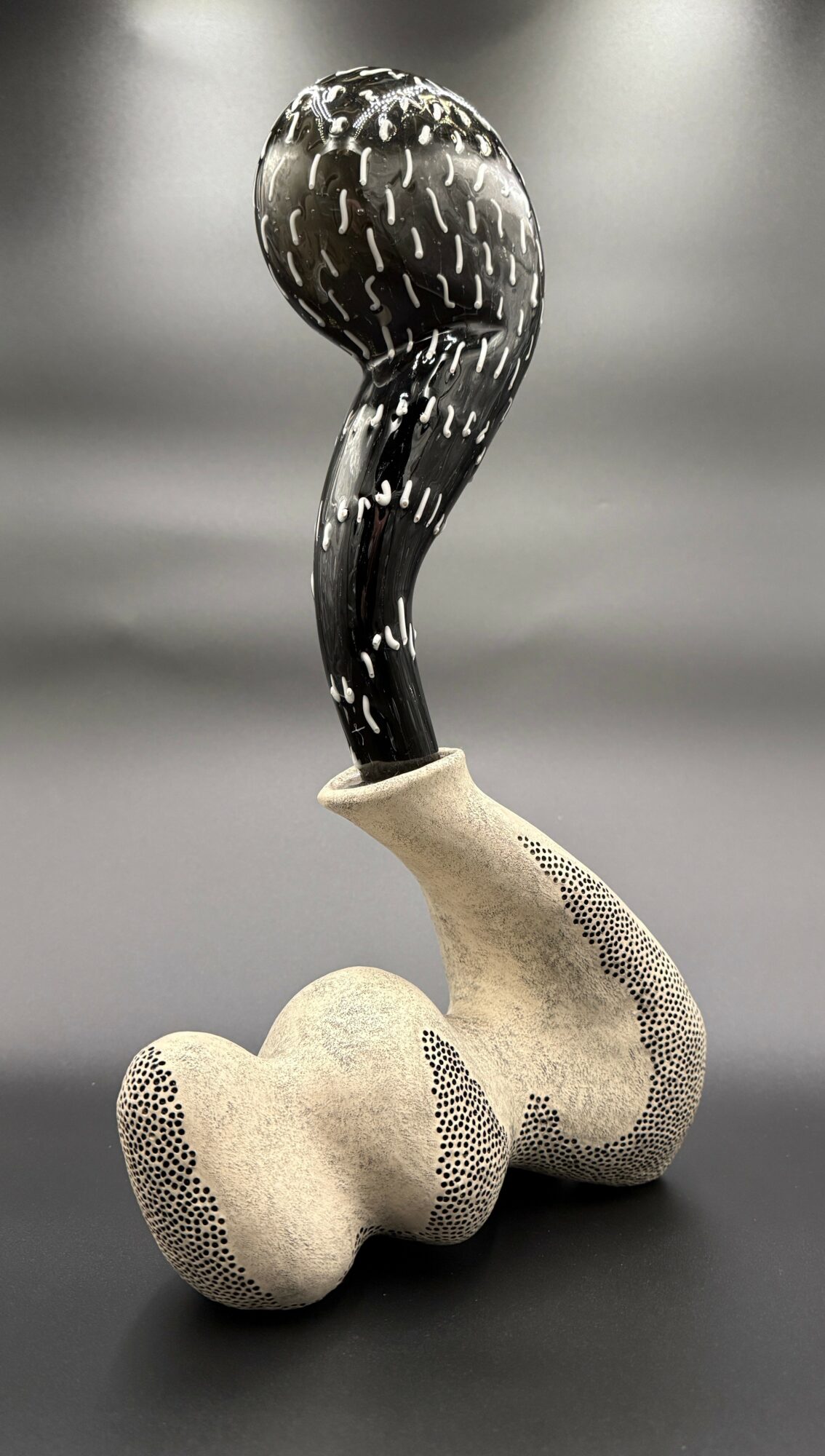 Currently I draw inspiration from SEM images of organic materials, oscillating chemical reactions and the patterns created in mediums under the influence of different frequencies. I work with many mediums. I find myself working out ideas in pen and paint, but my mind works best in a 3D mode. Glass and ceramic have been my main mediums but I work with anything to bring my ideas to life.