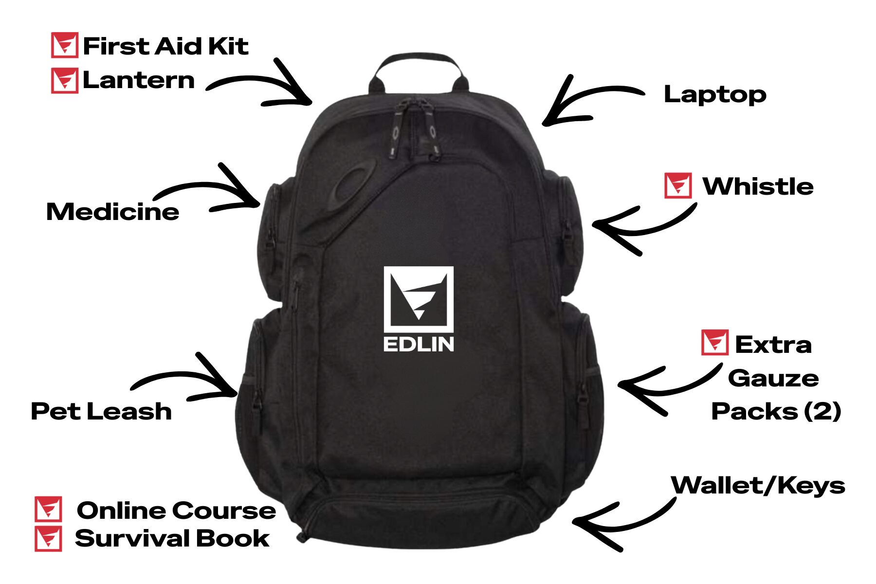 The Edlin Tornado Go Bag includes only the essentials: