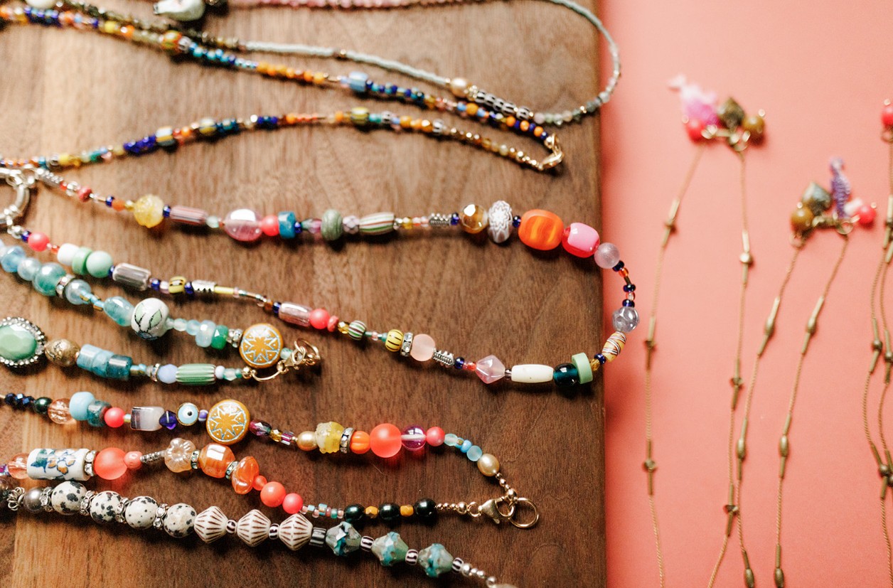 I spent many years making jewelry with purchased brass parts in multiples, and growing a wholesale business some wonderufl retail partners. Over time though, that wasn’t filling my cup creatively. I made the really hard decision in 2023 to close down my brand Fate & Coincidence. After a year of rest I decided to develop a new brand that felt more truer to this moment in my life. I wanted pieces I could spend more time on, and higher quality materials that would last. I shifted from brass to sterling silver and gold fill, to semi-precious stones and vintage jewelry pieces I could repurpose into something new. I would say my main craft I’ve leaned into is beadweaving, working large and small scale. This is the art of beading similar to a loom but freehand with nylon string and Japanese glass beads. It is tedious and requires massive patience, but I find it really meditative. I love what I do and I hope every piece makes you smile. I want the wearer to really feel like they are having fun and not taking themselves too seriously.
