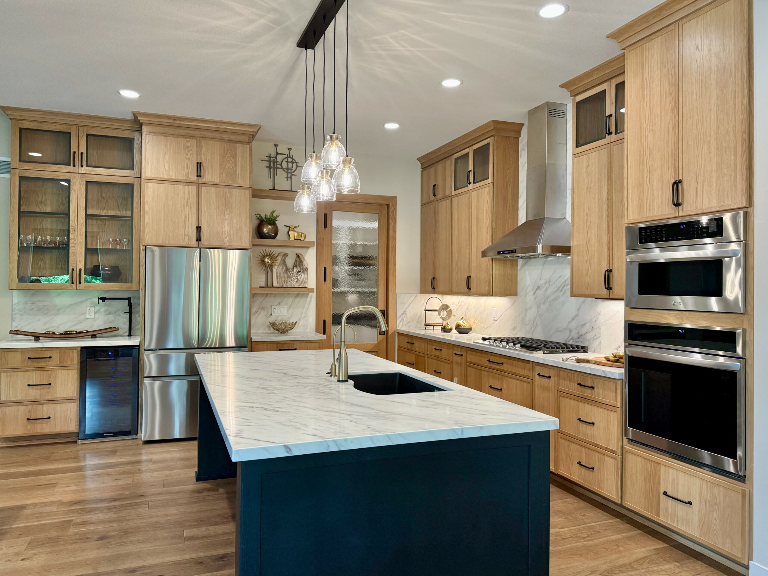 In the beginning it was literally just me, working out of my house. Over time, the client base grew, the work got bigger, and in 2013 we moved into our studio in downtown Lee’s Summit. Since then, we’ve been fortunate to work on so many different kinds of projects across the KC metro, from private homes to larger, visible projects like New Century Airport, KC Bier in Waldo, and the Lakewood Oaks Clubhouse. We’ve also led commercial work in medical, hospitality, and corporate environments. Watching those projects come to life, and seeing clients trust us with both the practical function and the personality of their spaces, has been the best part of the job.