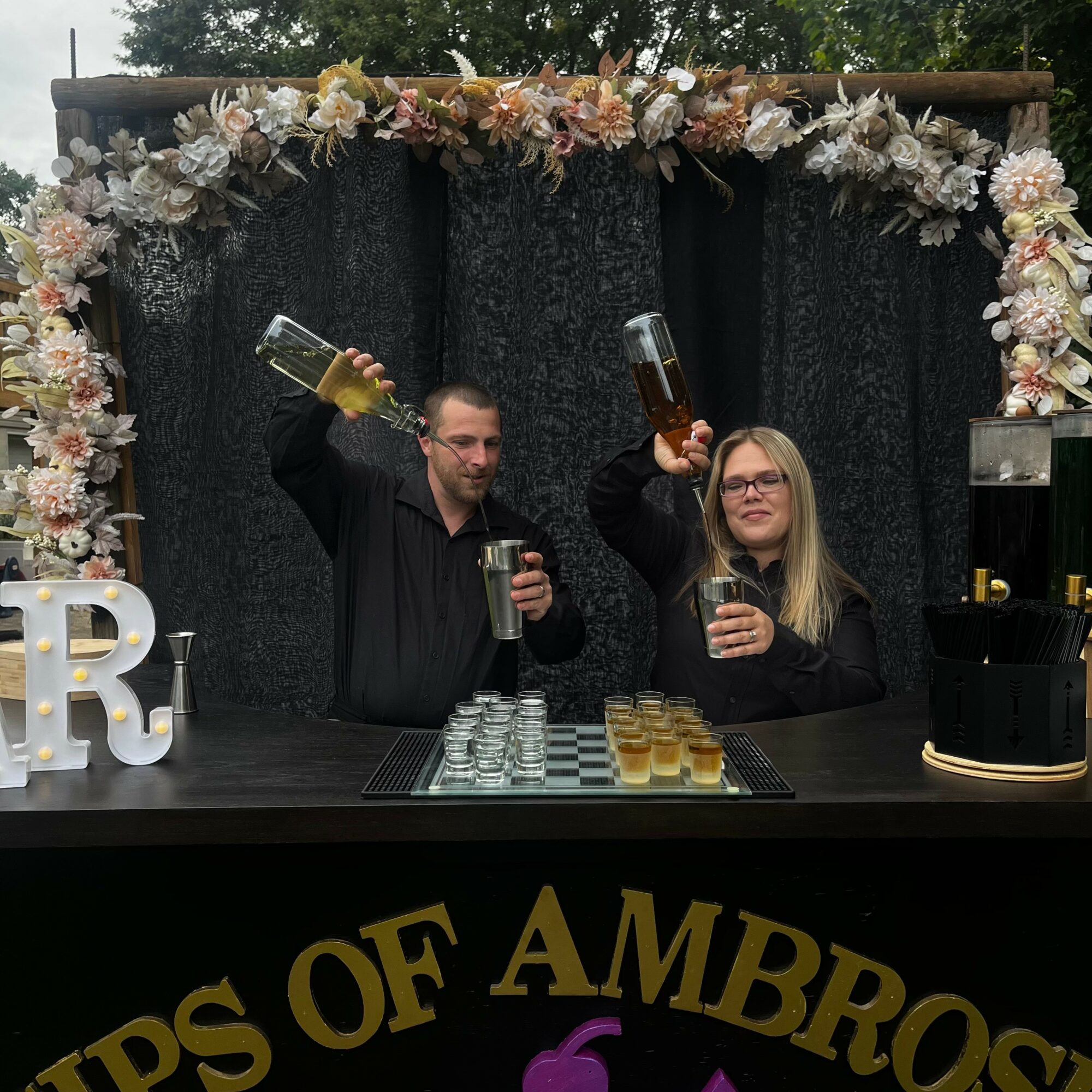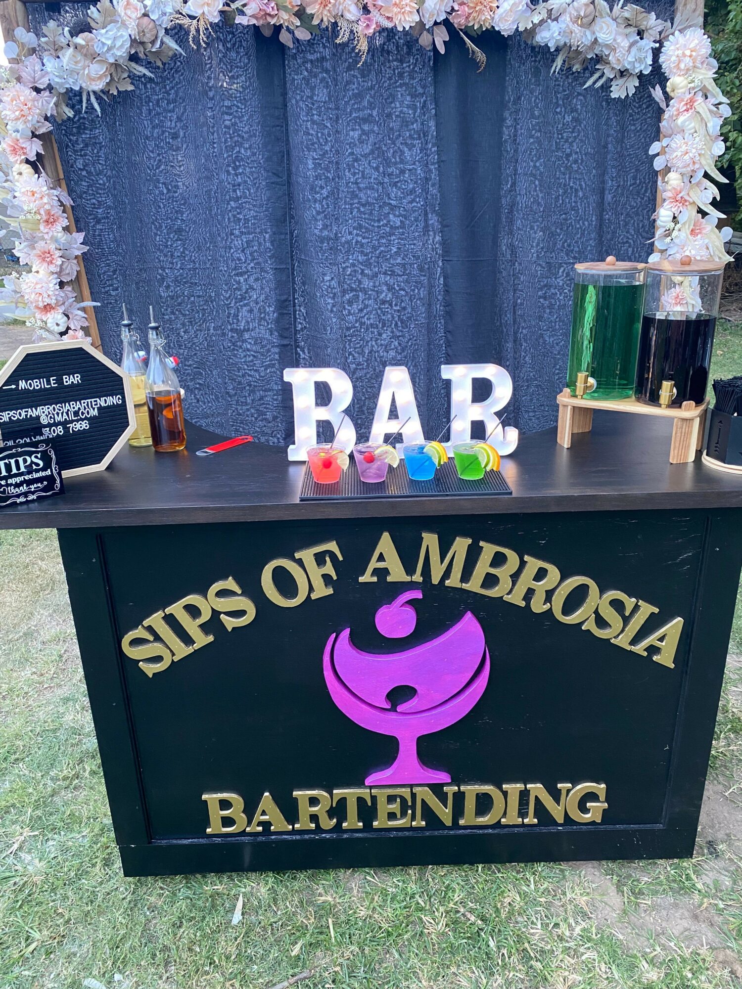 Sips of ambrosia bartending is a dry hire mobile bartending service. This means we provide everything but the liquor. We specialize in weddings, corporate events, birthday parties, and any celebration you can think of. We show up with a custom handmade bar setup , all the homemade specialty syrups and mixers, fresh cocktail garnishes, and all the cups, straws, napkins, and ice that is needed create an open bar for the entire event. My passion and joy for this business is what sets me apart from others. When you love what you do it’s not work, it’s an experience.