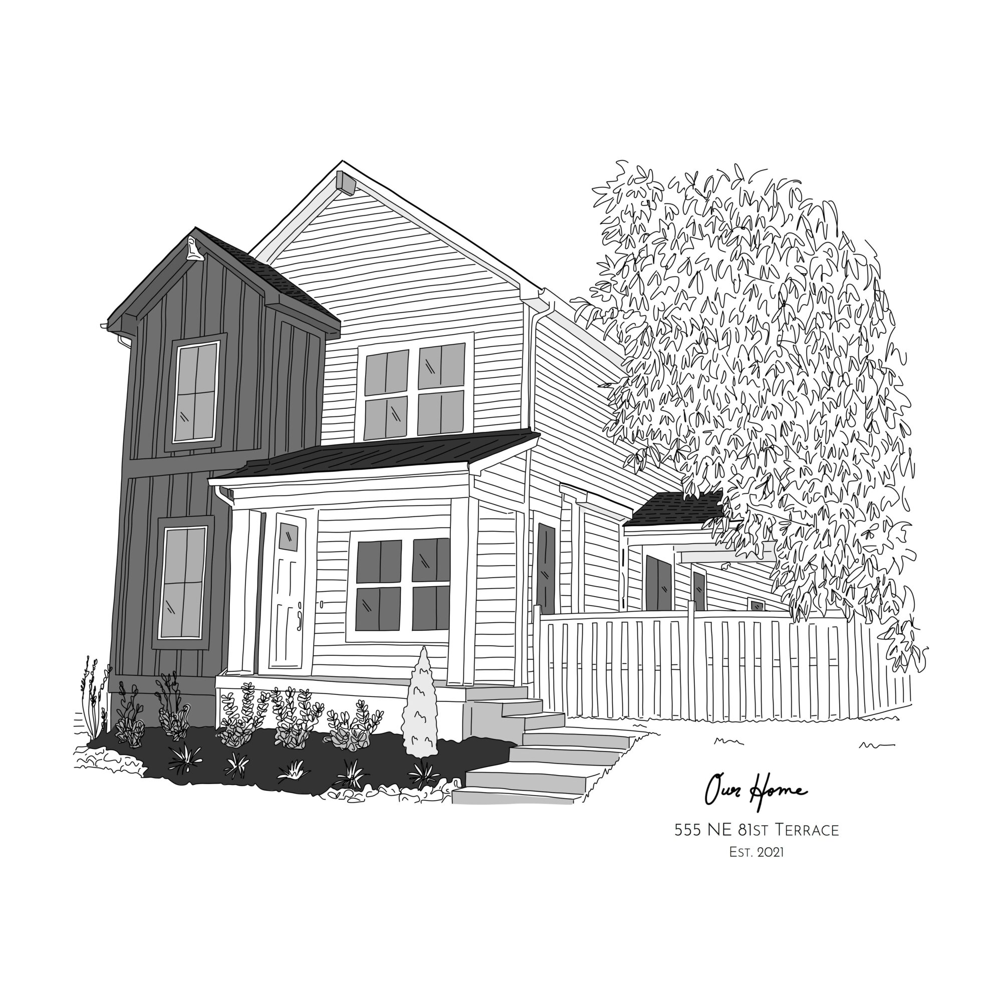 We mainly specialize in our custom illustrations – we call them Illustrated Nouns. They are completely hand-drawn images (no apps or filters used) and are based on photos that our customers provide. We draw people, pets, homes, people’s favorite things – and most recently we have rolled out our Pop-Up Portrait events.