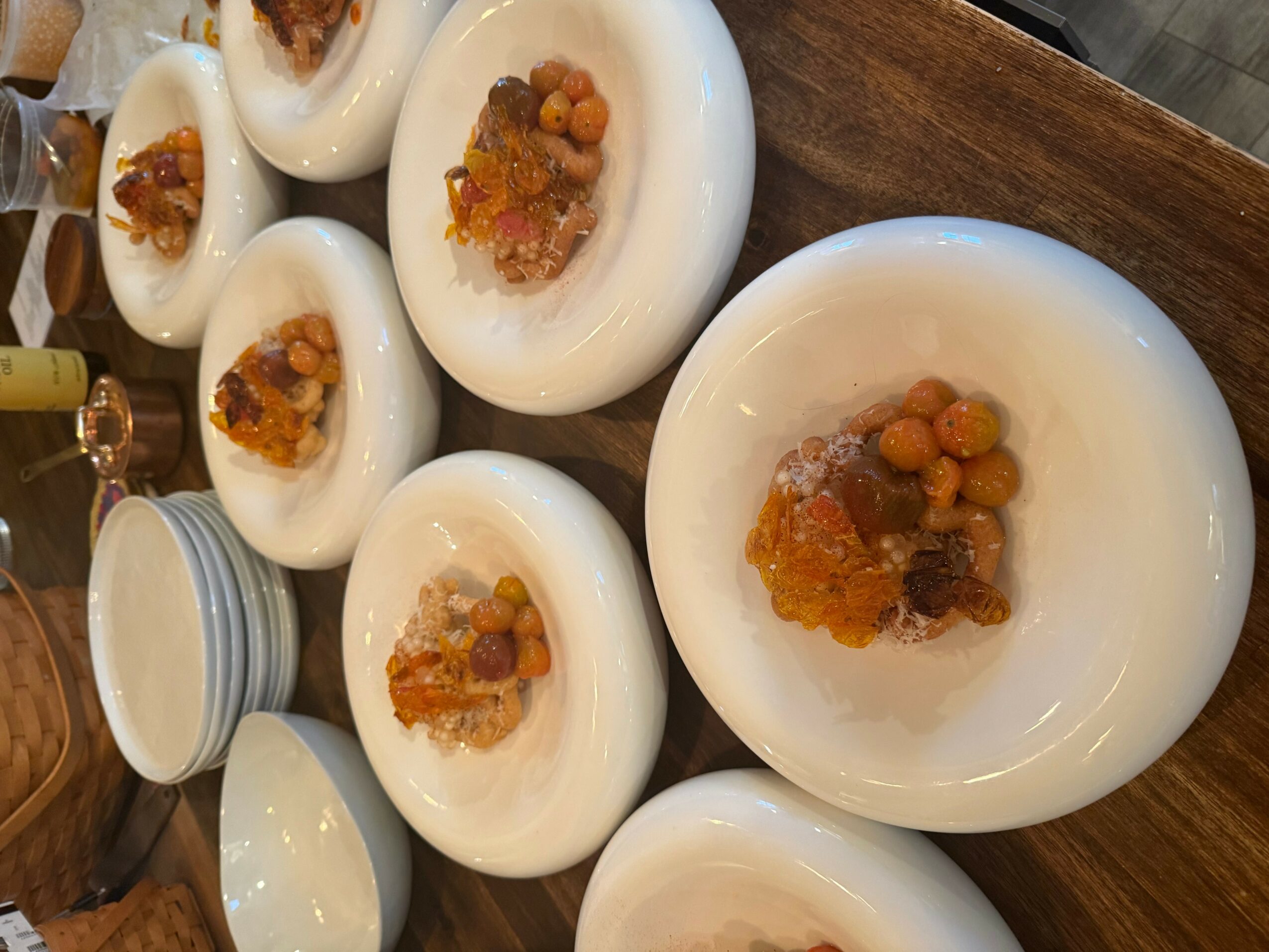 There are many things to consider when serving a multi-course dinner like this. You not only have to create multiple unique dishes, but you have to source the ingredients, portion the courses out properly so everyone feels satiated but not over-full, get the timing correct between courses, serve the plates so they all get to the table at the same time, and many other factors. Not to mention preparing all of the food or all of the things on the business side like food cost, taxes, etc. With every event we do, the more we learn and the better we get at our jobs.