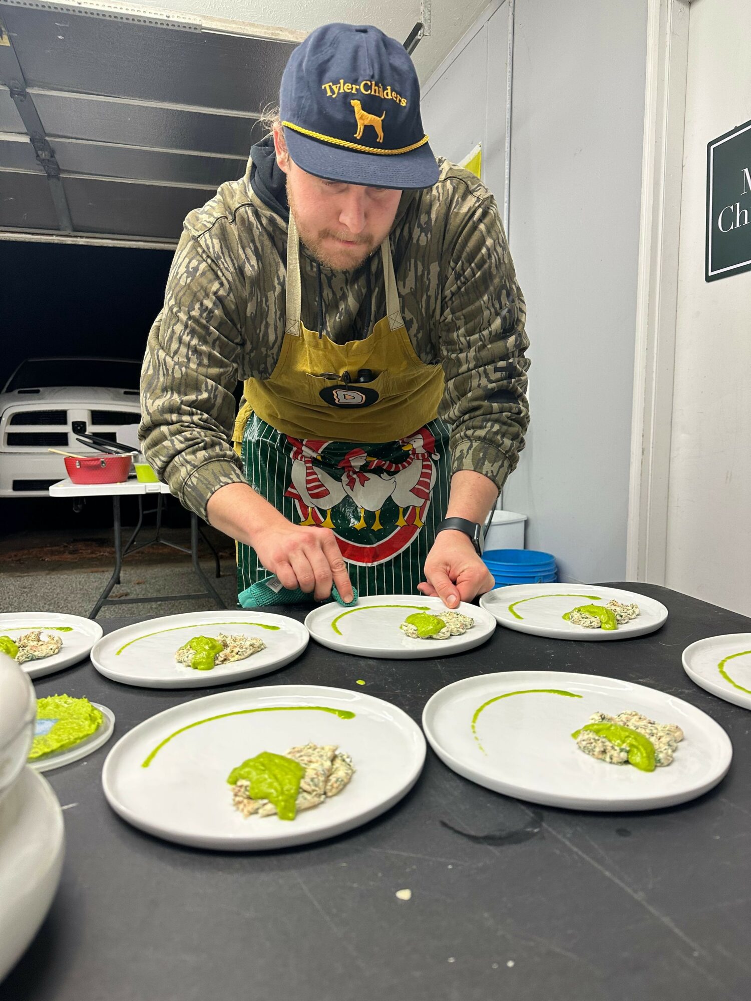 I love to eat food, and I really love to eat good food. I’m sure I was always a pain in my parents’ side every time we ate out at a restaurant because not only did I not know what “the kids menu” was, but I typically ordered the largest (and likely most expensive) item on the menu. I wasn’t just a gluttonous kid, I also had a clever streak in me – so I came to the realization early on that the quickest, most efficient way to eat good food was to learn how to make it myself. So from then on, I was always in the kitchen looking of my mom’s shoulder and helping her out in any way I could. I even would have my mom drop me off at my grandma’s house a day before Thanksgiving so I could help her prepare the big meal for everyone the next day. That fascination grew through high school at West Platte High School in Weston, Missouri and followed me to college at Kansas State University where I studied Horticulture and Landscape Design. In college, students have a lot of free time, or at least students that are actively trying to procrastinate their homework do. So I filled that time by consuming a lot of food media on YouTube and Netflix and became incredibly motivated to try to replicate the dishes I was watching the chefs of the world create on my screen. With my roommates Jack, Alec, and my now wife Alexa as my guinea pigs, I’d test out recipe after recipe with whatever I could afford. And by the time I had graduated from college, I had a pretty decent self-taught culinary education. Alexa and I moved to Holland, Michigan to start our new lives together as newly weds. In Holland, I started an Instagram page called “My Experimental Kitchen” dedicated to highlight the things I was cooking – not only to share with family and friends, but as a way to push myself creatively to come up with unique dishes that are pretty to look at. After a few months, I was getting some interest from friends and colleagues in the area – people wanted to try my food! So Drunchies (I changed the name to be something a little catchier) officially launched on November 4th, 2023 with our first Supper Club hosted by our friends Amber and Cal Bauer. The dinner was themed around “the history of barbecue” and featured smoked brisket as well as twists on some classics like mac and cheese and burgoo. After two years (and a few more dinners hosted by other friends of ours) we moved back home to Kansas City and quickly established a great customer base. Today we operate in two main areas: Drunchies Supper Club, a private dining service focused on local, haute cuisine in more intimate settings like dinner parties, micro-weddings, or private events. Drunchies Street Food Co. pops up at festivals to deliver fast, casual eats like smashburgers with our signature creative flair. Regardless of which side of Drunchies we’re operating on, we try as hard as we can to source our ingredients from local farms and suppliers.