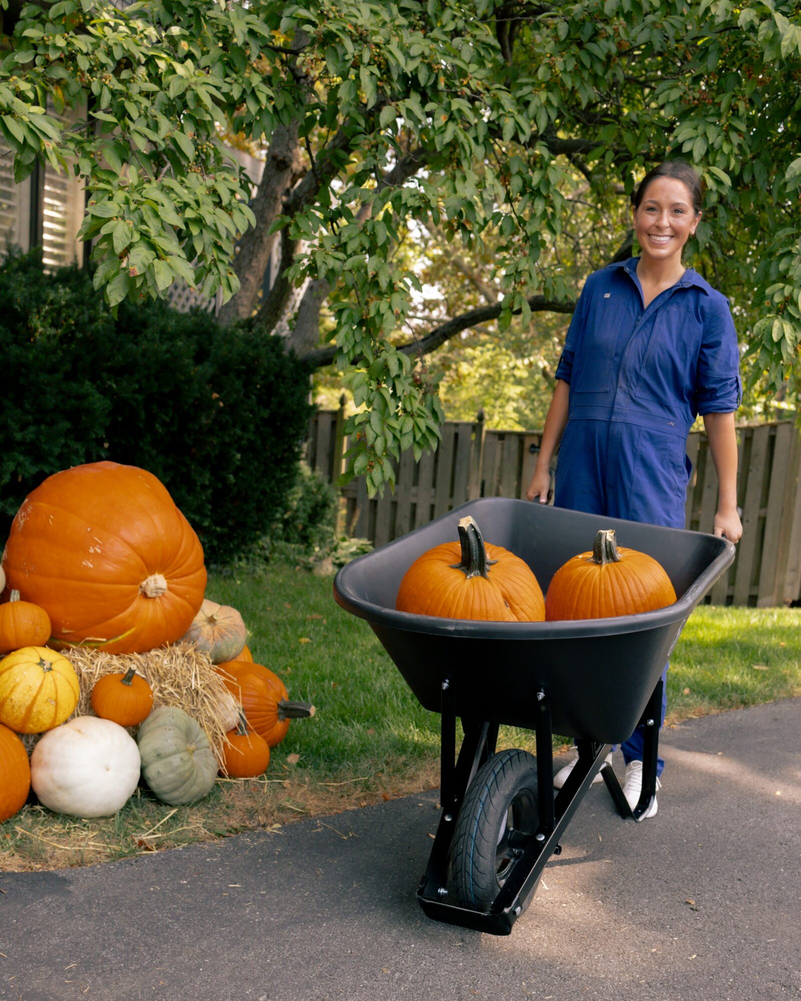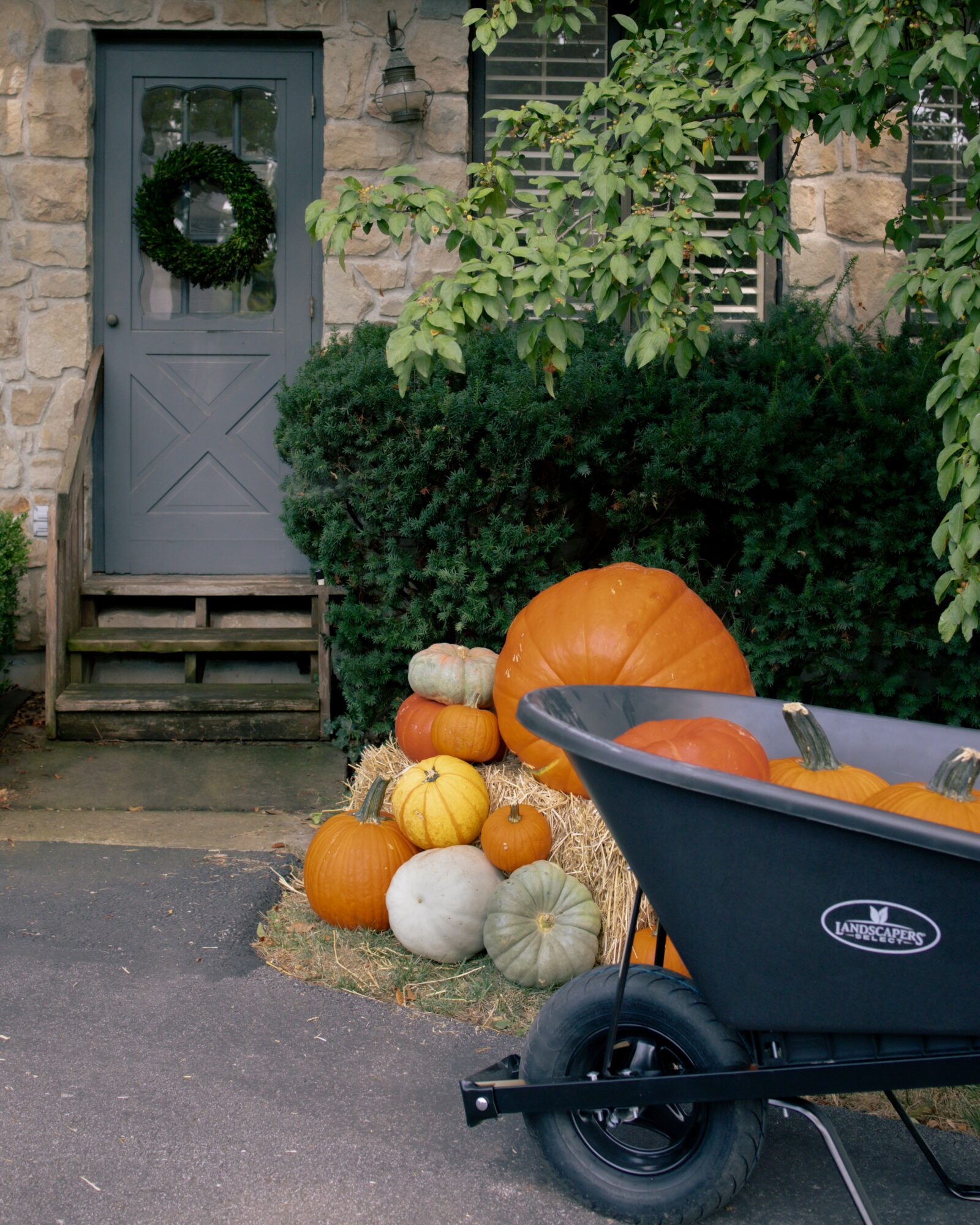 • I started late in the season last year, in October, and quickly realized that it is hard to sell this product if people can’t see what it looks like. I asked many friends if I could use their porches as “models” for my project. Cold calling homeowners and friends of friends to use their front porch as a display. How willing everyone was and what truly set me up for success this year. I had two great friends, Kelsey Kerbs and MK Minnis, donate a Sunday so that we could go around and get content! We put up and took down so many pumpkins that day—all supported by my Grandfather-in-law’s old Radio Cart wheelbarrow. Truly the most efficient day of my life!
