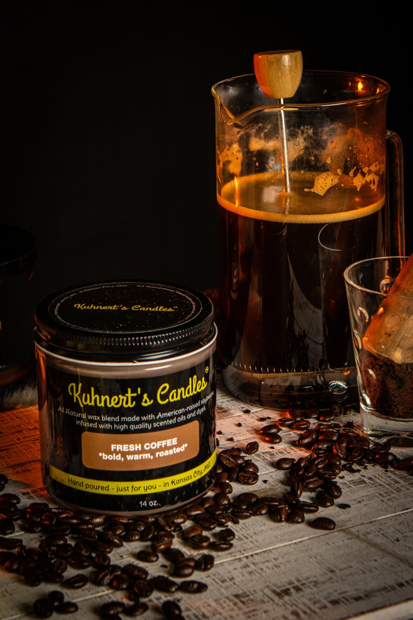 Kuhnert’s Candles are a superior product because we emphasize creating a great smelling natural candle that looks classy and burns well. We use a wax blend made of soy, coconut and beeswax that burns slowly and is rich with fragrance.