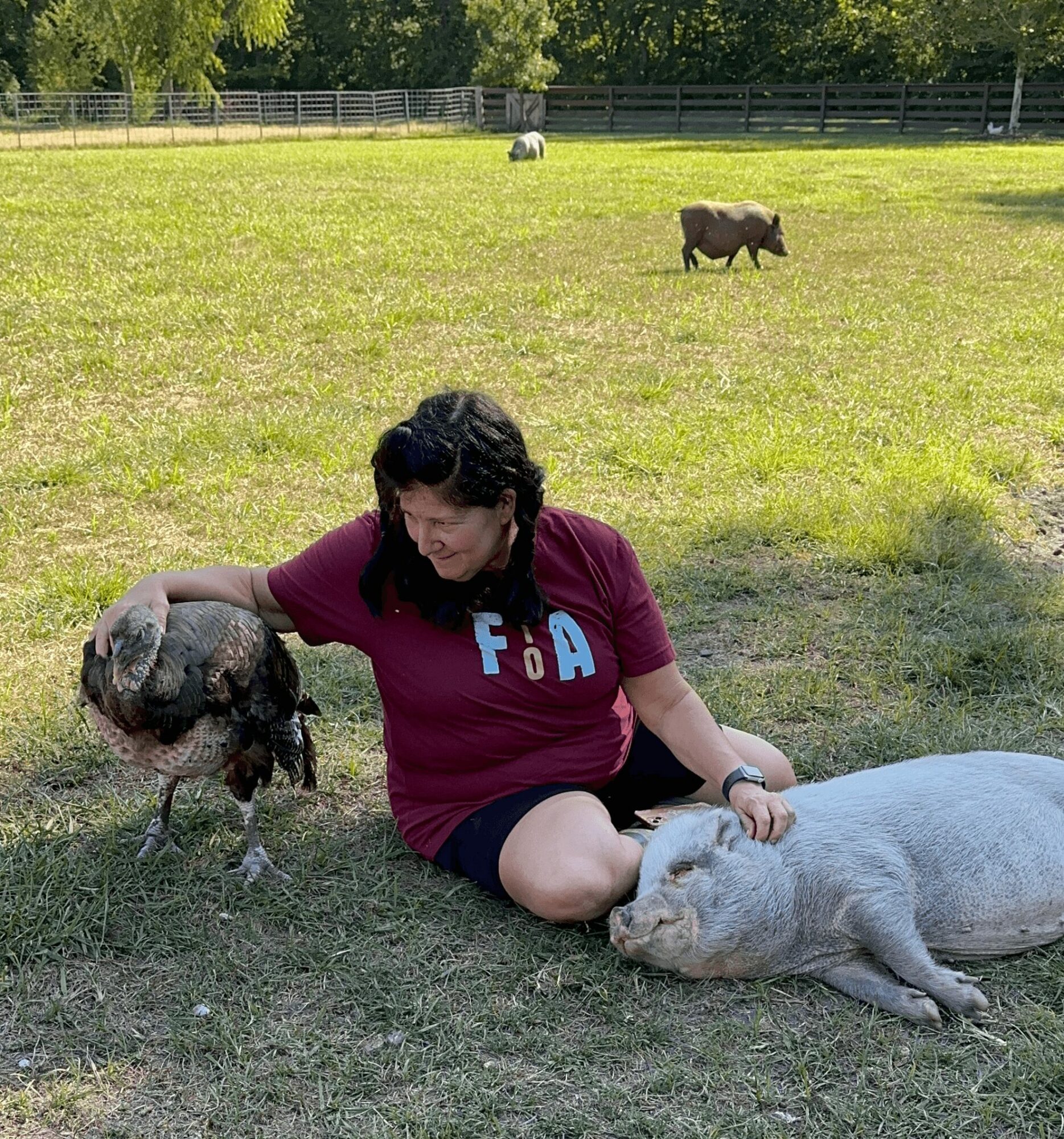 As I got older and learned more about the emotional depth and intelligence of animals — especially pigs — my entire understanding of “farm life” shifted. I began to see the realities of the meat and dairy industries in a way I couldn’t look away from. That awareness pushed me toward vegetarianism and then veganism and, eventually, toward advocacy. For years I worked in hospice care, which taught me more about dignity, gentleness, and presence than anything else could have. But I felt a pull — a calling — to expand that care to beings who often go unseen.