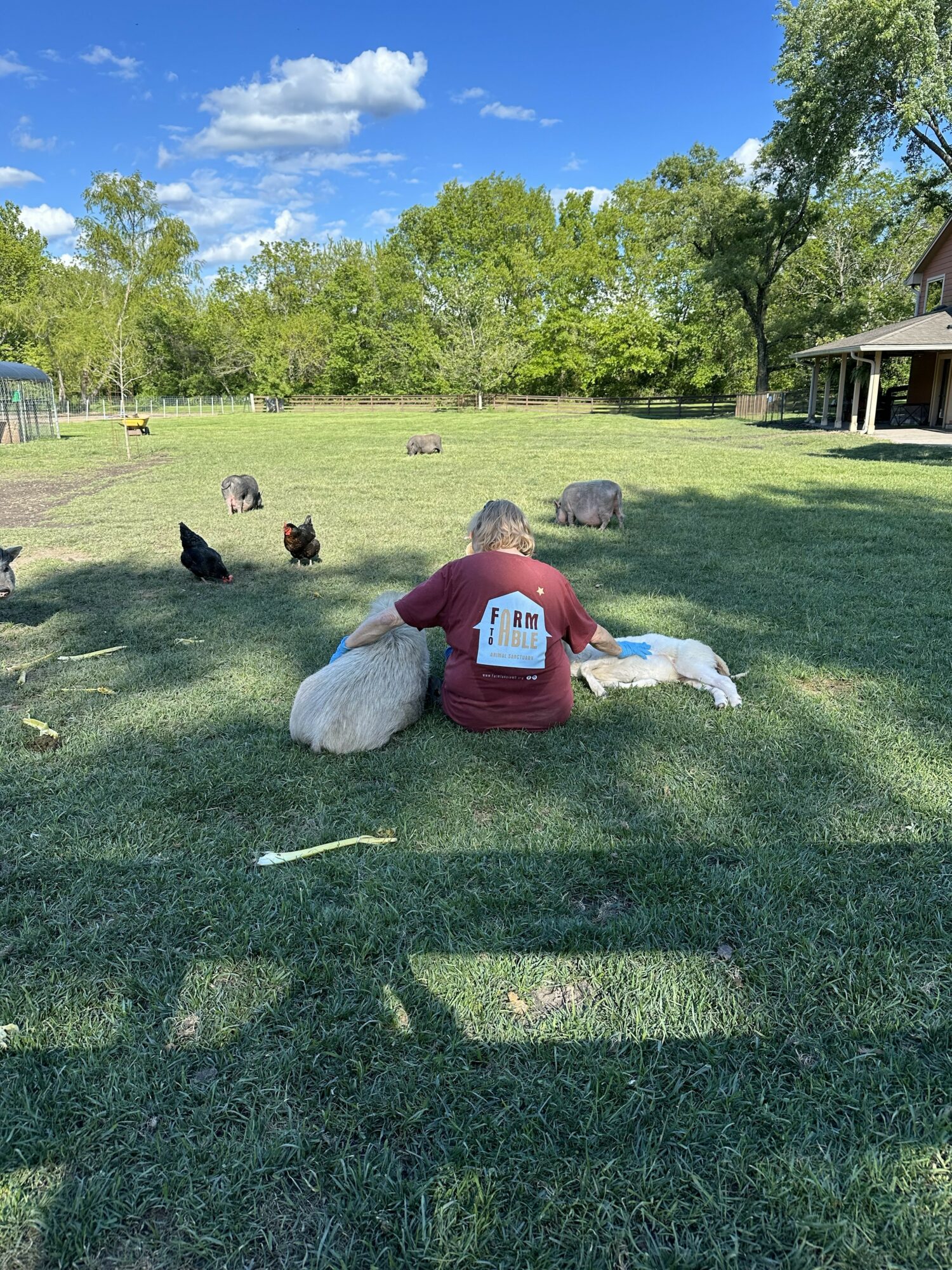 Farm To Able is absolutely not a one-person operation, and the sanctuary would not exist without the incredible people who stand beside me. First and foremost is my husband, the co-founder of our nonprofit. None of this would be possible without his support, his belief in our mission, and the countless hours he puts in behind the scenes.