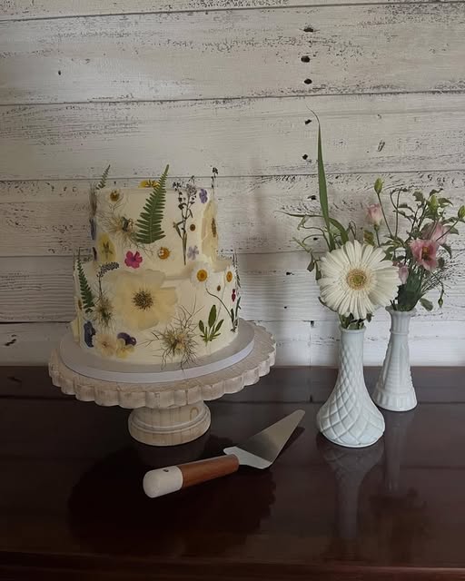 I think the biggest foundational shift we are seeing in the industry is bridal couples letting some of the traditional things go. Something I’ve noticed a real shift in is the tradition of cake cutting. Many couples are now doing it in a more private setting vs having all the guest watch. It’s often unannounced and done more quietly now. I am seeing more sweetheart tables (a small table for only the bride & groom) over a large table for the whole wedding party that includes the couple. The cut cake is being placed at the sweetheart table and the couple cut it as they finish dinner or go back to have a quiet minute together. This has meant a big difference in cake size and what is served to guests. Tradition was always a large, multi-tiered cake that the couple cut and served to guests as they watched. We now see small single tier, or small two cut cakes that the couple cuts together. Another tradition that is really a thing of the past is a groom’s cake. I have been doing wedding cakes for along time and I am not even sure the last time I did a groom’s cake. Another shift I am seeing is doing away with the tradtional keepsake cake. When I ask couples if they plan to keep the top tier, most now wrinkle thier noses and ask, “is that a thing?”.
