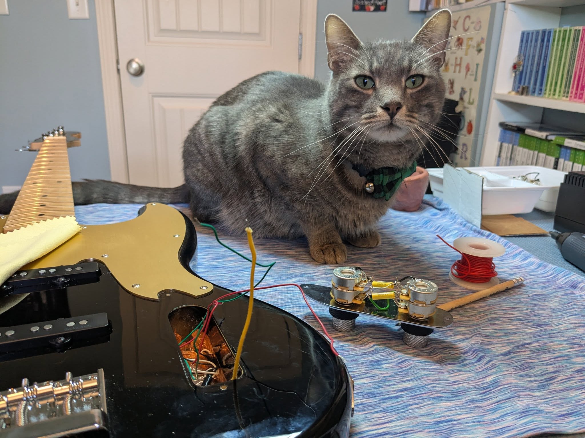 I also have an Electronics background which allows me to fix most electric issues in a guitar. Sometimes the customer brings different guitar pickups, components and parts they prefer to install.