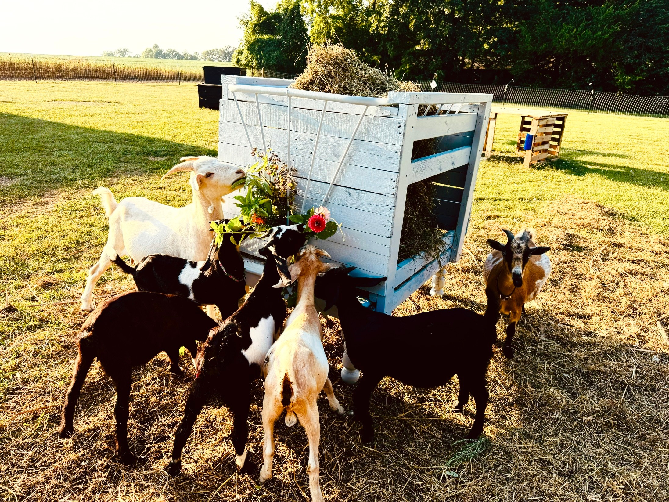 We started small by converting a cottage on our property into a private guest house and began cultivating flower beds, pumpkin patches, and a potager garden. I also began building animal shelters and barns using recycled materials and antique furniture. I have been known to send my poor husband all over KC to pick up what he considers junk! My husband has since learned to embrace my creative process, even when I bring home old pallets, furniture or iron racks to transform into unique goat feeders, and a complete recycled wood barn!