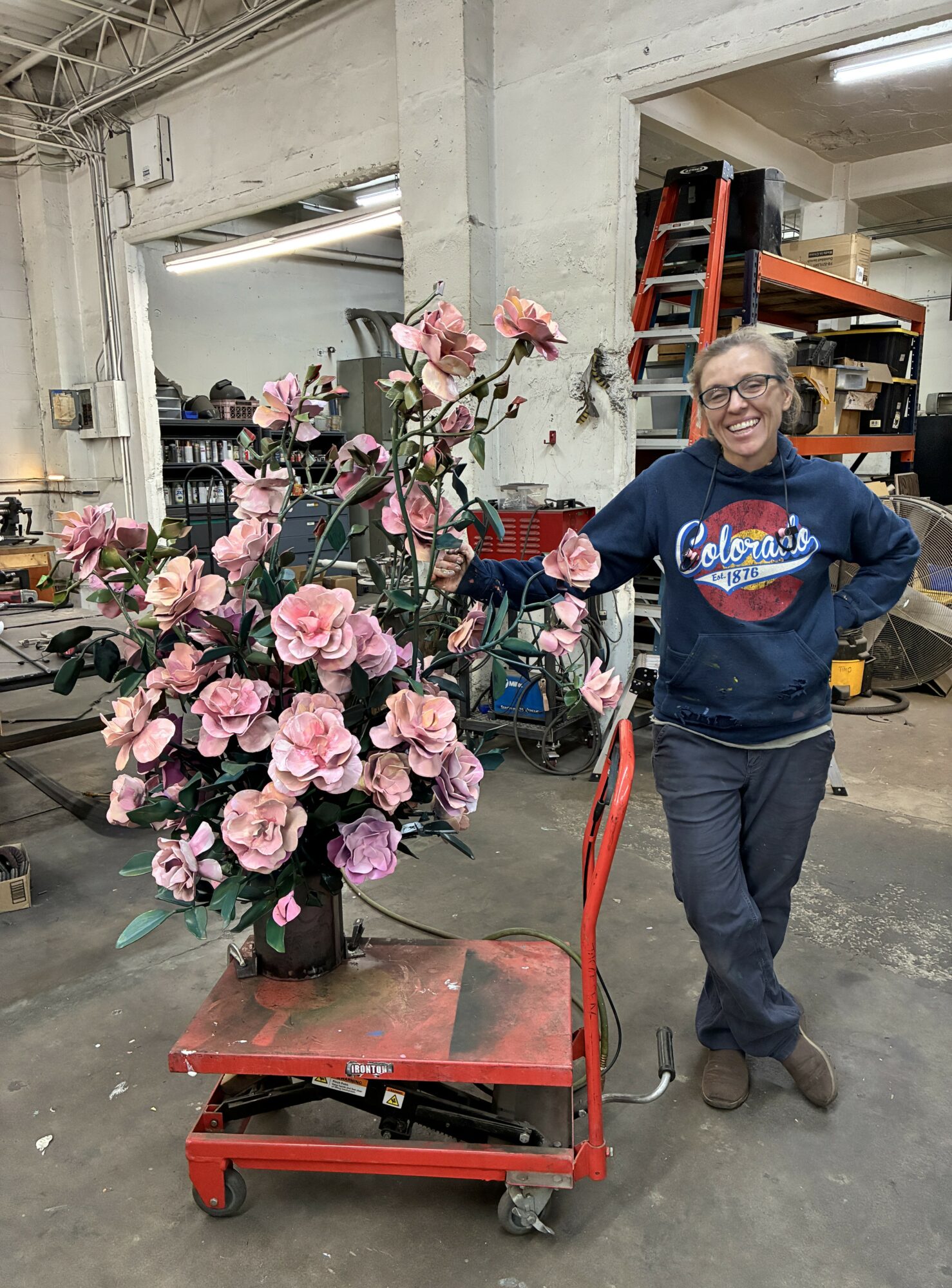 Since then, I’ve designed, fabricated, and installed sixteen permanent public artworks and numerous private commissions across the country, from Coral Springs, Florida to Fremont, California. In 2025, I was commissioned to create four sculptures for the New York Botanical Garden’s summer exhibition Van Gogh’s Flowers and recently installed works at AdventHealth’s new hospital in Lenexa and another at the BE Smith Family Center in Merriam, Kansas. I am currently creating a public art piece for the Kansas City Zoo, will have a large piece headed to Liberty, MO in the spring of 2026, and am collaborating with another local artist, Jake Balcom, on a large gateway sculpture for Springfield, Missouri, celebrating the 100th anniversary of Route 66 to be installed in March-April of 2026.