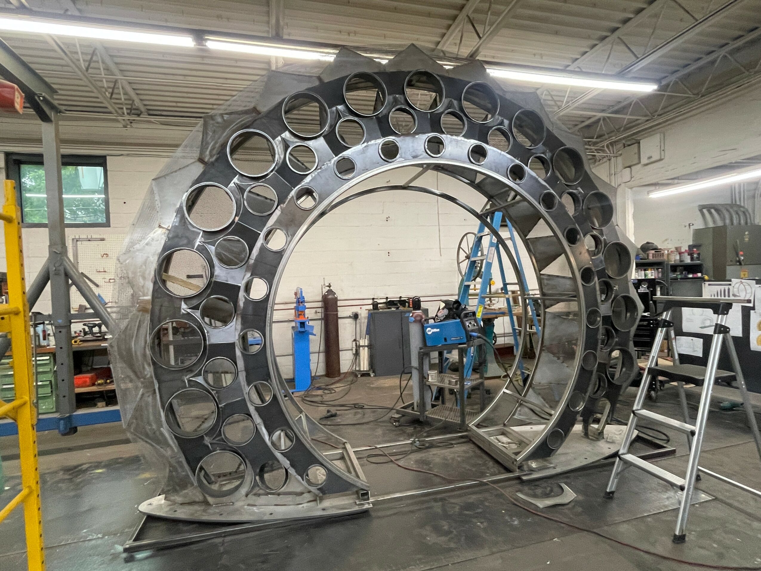In 2018, I married Tim O’Neill, founder of The Urban Lumber Co. In 2020, we purchased a 17,000-square-foot building in Independence, Missouri, which now houses both my studio and fabrication shop on the main level and his woodshop below. I currently employ five assistant fabricators. Farris Wheel Studios, LLC is my design+build fabrication studio, specializing in public art and sculptural installations.
