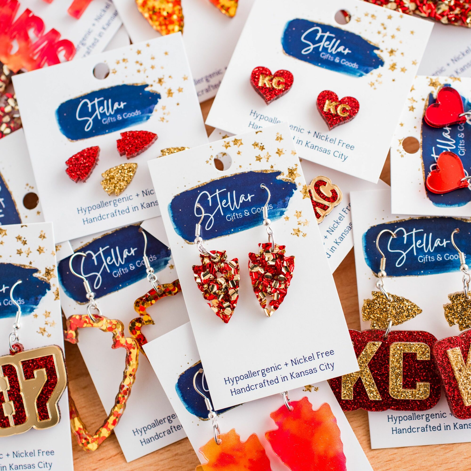 Jenny & I are high school sweethearts & serial entrepreneurs here in the Kansas City area. We’ve been wedding & portrait photographers, boutique owners, breathwork teachers & currently run Stellar Gifts & Goods which we started when we were burnt out and bored during covid. Neither of us had ever made earrings before or ran laser cutters, but we decided to take the plunge and bought a glowforge. Within a month we added a second glowforge & that grew into running a storefront for 3 years while selling our goods all over town in Made in KC locations, Shop Local, the Kansas City Airport as well as popup events throughout the city over the last few years.