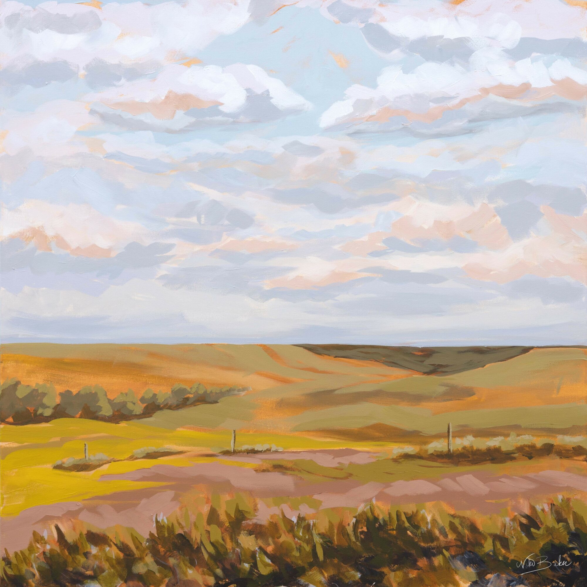 I grew up in the Kansas plains, drawing horses and Disney characters from age 5. My passion for art fueled my earning a BFA in Painting at Kansas State University. My work is inspired by nature and my love for outdoor adventures—kayaking, biking, and exploring places like the Colorado mountains and Flint Hills—I combine my creativity with my connection to the natural world.